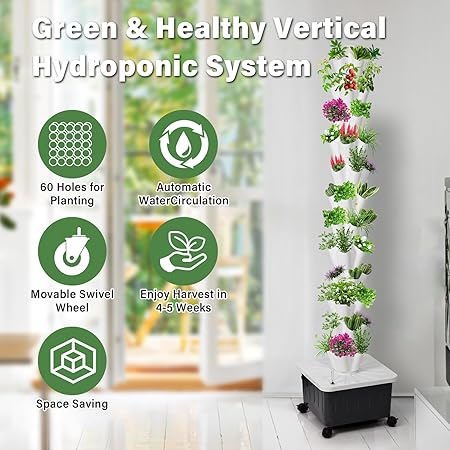 - 【Optimized for Growing Indoor】The vertical hydroponic garden tower has been designed as a piece of natural art for any home and relies on high-quality materials,recyclable food-grade plastica that are BPA frees. The hydroponics growing tower runs continuously as long as it is plugged in, saving time and effort while greatly increasing productivity