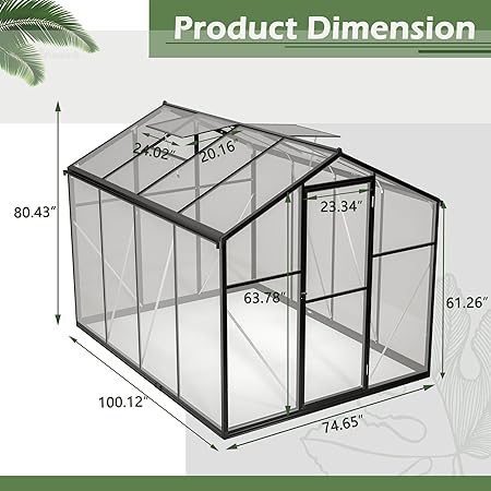 - With its sleek black finish and spacious design, this greenhouse integrates into any garden or backyard, enhancing the while providing a dedicated space for gardening.